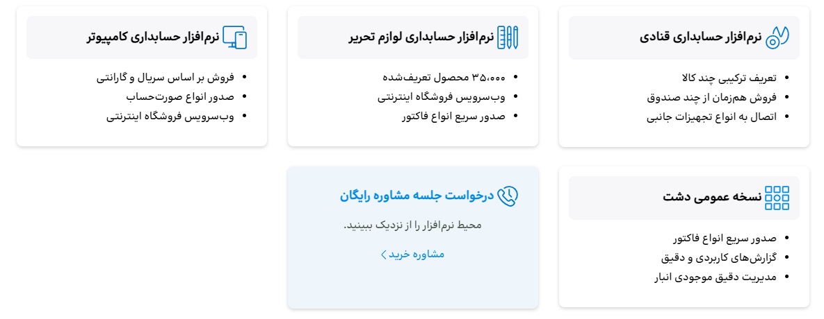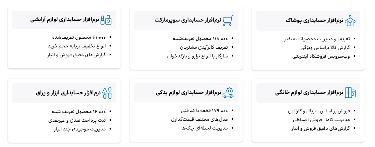 یکی از نقاط قوت اصلی سپیدار، ارائه نسخههای تخصصی متناسب با ساختار هر صنف است. این تخصصیسازی باعث میشود که شما برای خرید، هزینهای بابت قابلیتهای غیرضروری نپردازید.