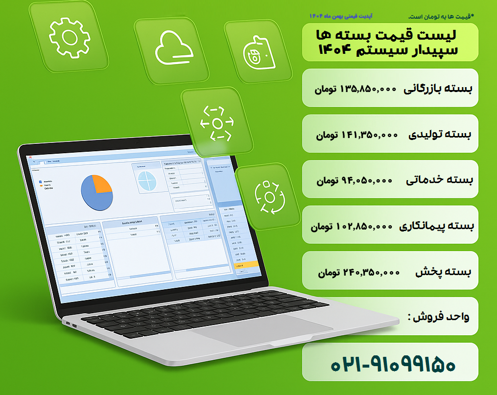 در سال 1404 از بهمن ماه قیمت های سپیدار سیستم به روزرسانی و آپدیت قیمتی شد.