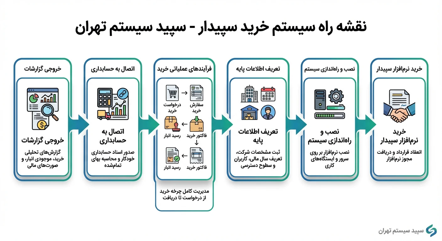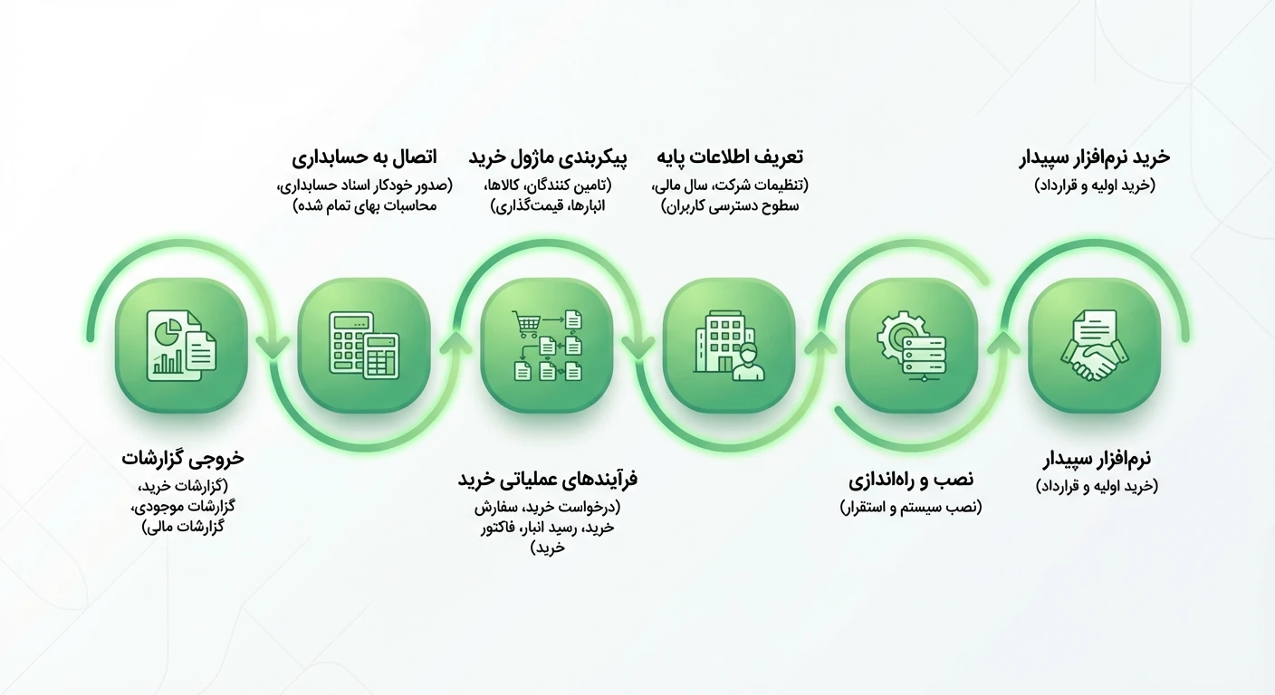 خروجی این مرحله: انتخاب بسته درست سپیدار (بازرگانی، تولیدی، پیمانکاری یا پخش) که بیشترین انطباق را با فرآیندهای اصلی شرکت دارد.
